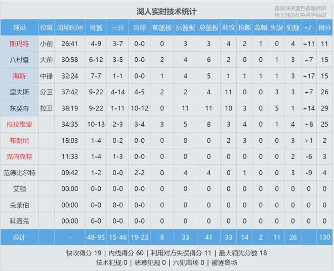 此役過(guò)后,湖人5勝2負(fù)升至西部第三。最后看看數(shù)據(jù),說(shuō)說(shuō)你的心情:
